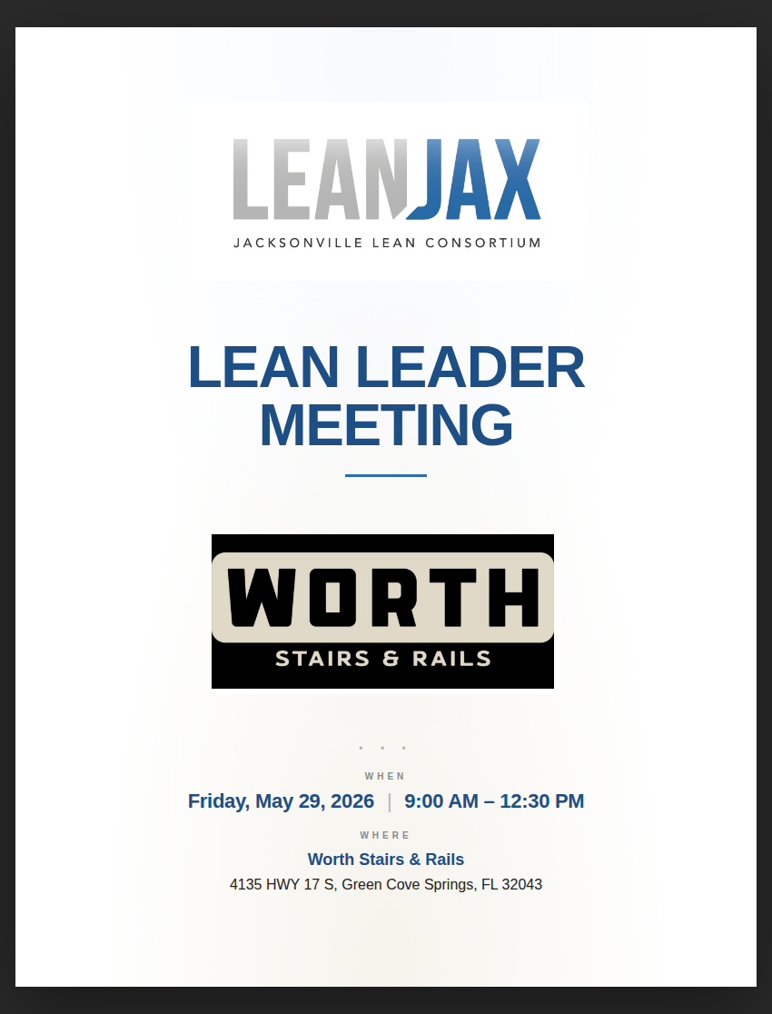 Jacksonville Lean Consortium — May 29 Lean Leader Meeting