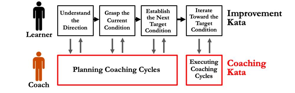 Note: You’ll be learning as a practitioner of the Improvement Kata. Developing coaching proficiency requires extended practice and will be covered in future advanced training.