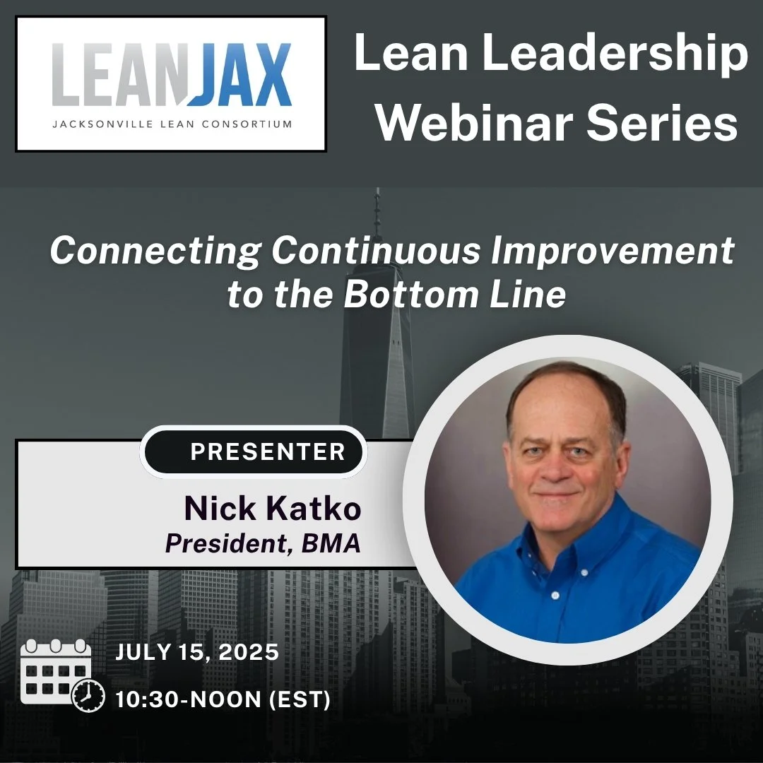 The Jacksonville Lean Consortium (“Lean Jax”) is thrilled to announce the return of our Lean Leadership Webinar Series: Connecting Continuous Improvement to the Bottom Line; presented by Nick Katko!